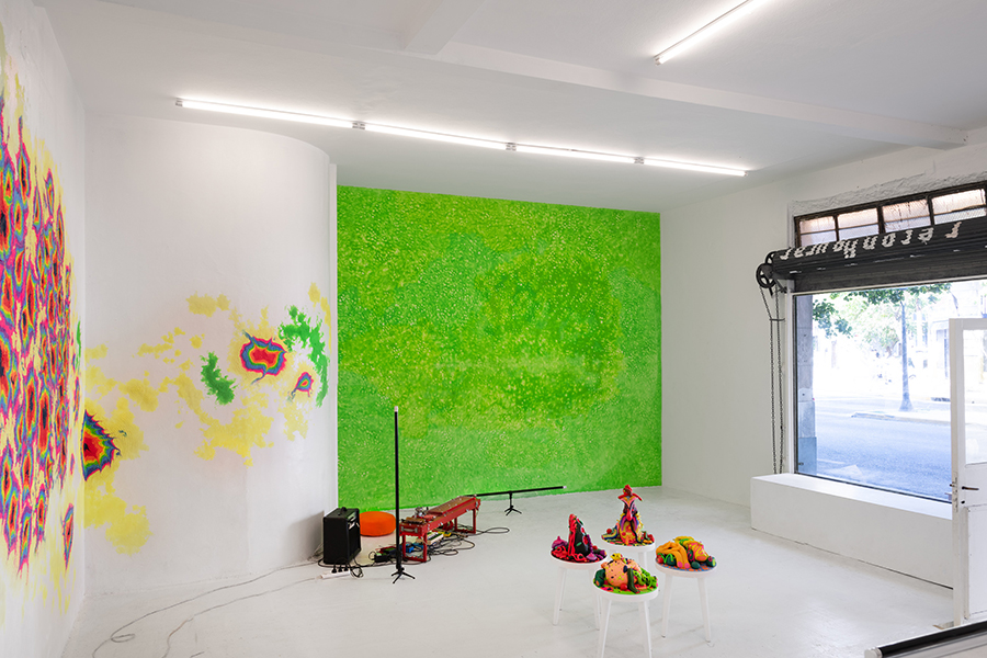 «Concentrada fuertemente sobre los aspectos más físicos de la sensorialidad, la intervención que Mauro Koliva llevó a cabo en la arquitectura de Smol, al mismo tiempo que dispone en el espacio una serie de recursos formales y técnicos de diferentes naturalezas, despliega un imaginario denso y minucioso de collage Psytrance. Grandes cantidades de plastilina fluorescente tratada sobre las paredes hasta volverse irreconocible cómo material, sometida además a la transfiguración de la luz ultravioleta, sumado a unas extravagantes esculturas también de plastilina y a los no menos extravagantes sonidos del instrumento llamado MAKBRUM, conforman en su conjunto un ambiente artificial, elemental y disociado en el que se tensa una visión vitalista y alucinatoria sobre las posibilidades del dibujo.»