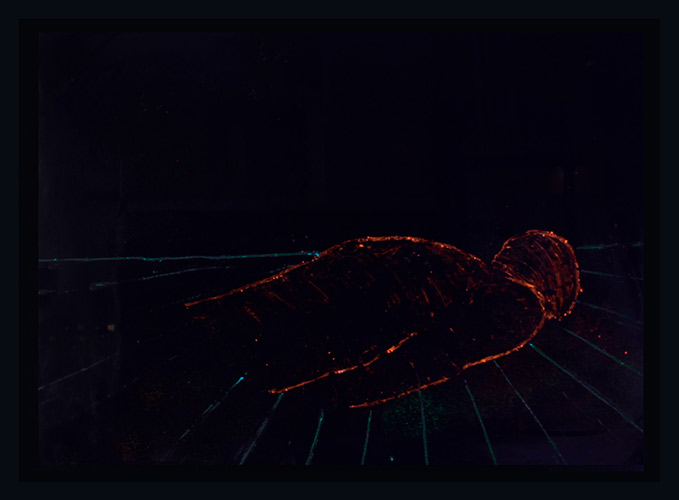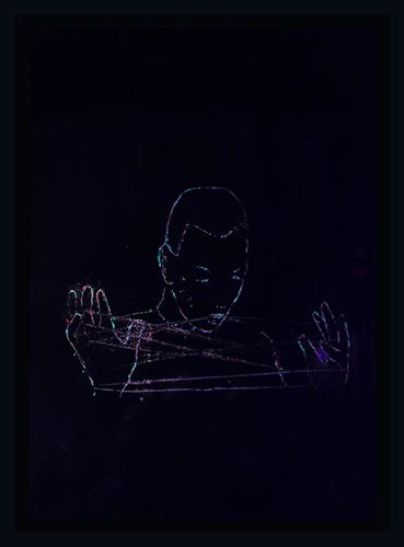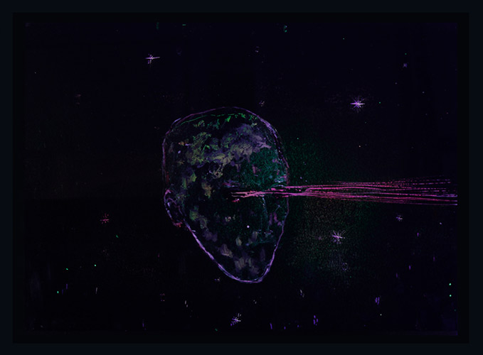 Los personajes navegan sin rumbo, realizan rituales inexplicables y los colores viajan y se arrastran a través de las superficies. La geometría y el mundo onírico se hacen presentes en un extraño despliegue espacial. Los símbolos aparecen para decirnos algo al oído pero nunca revelárnoslo del todo. Hay un misterio oculto en cada obra y cada espectador podrá descubrirlo, construirlo y reinterpretarlo en cada lectura.